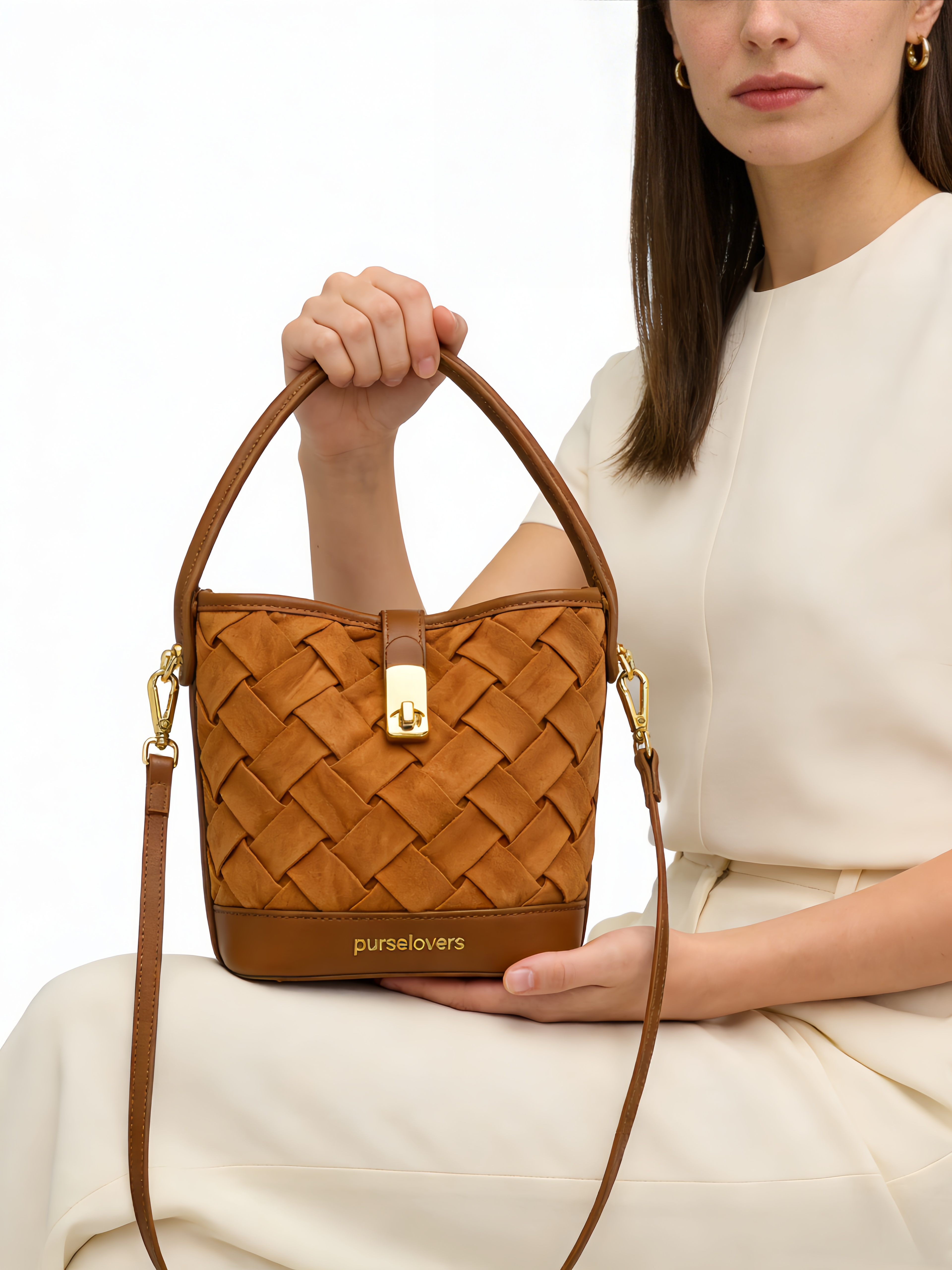 Purselovers Brown Woven Bucket Bag, Gold Label Edition