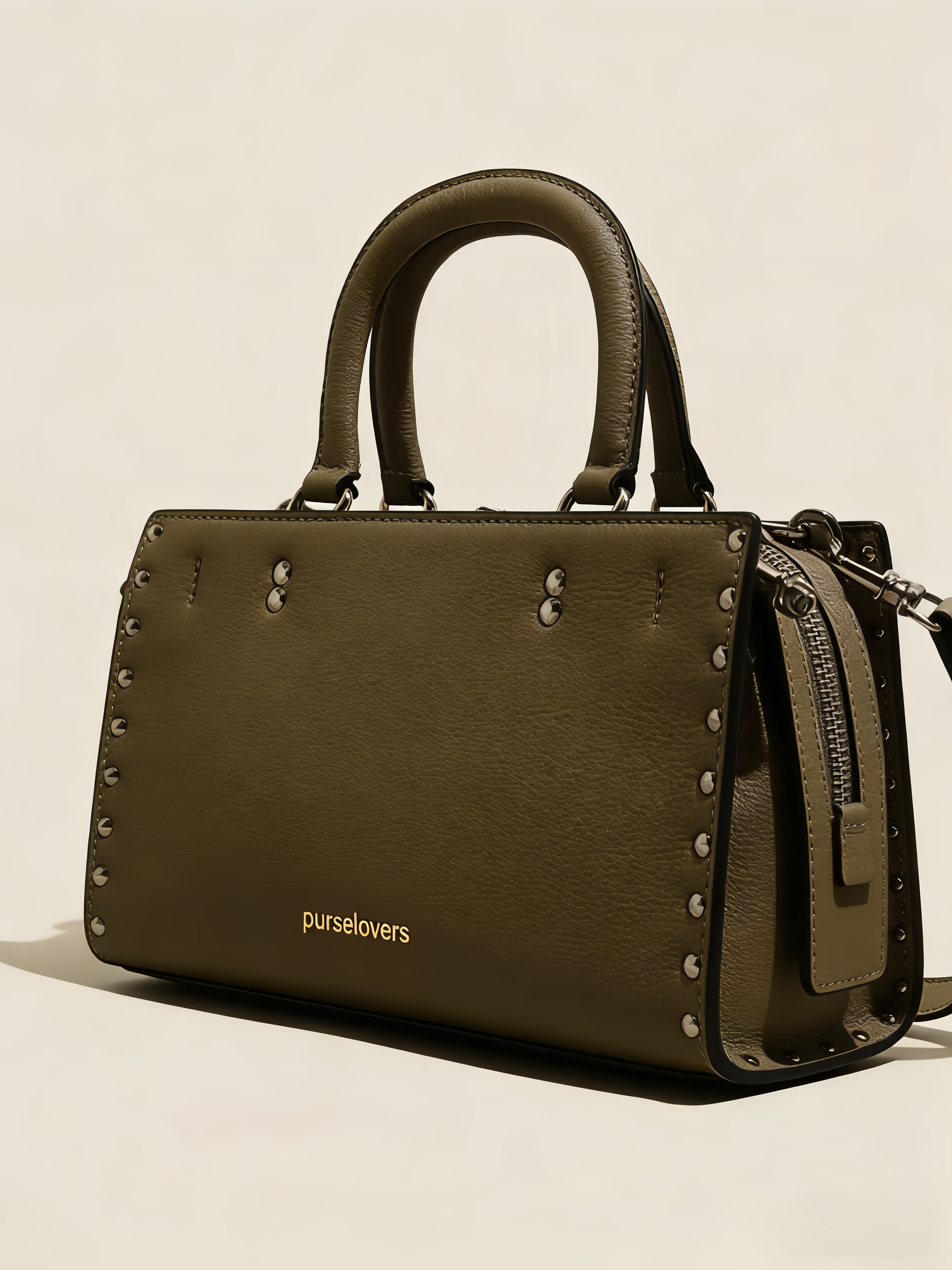 Purselovers Odyssey Olive Green Studded Gold Label Boston Bag